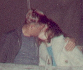 We had a midnight curfew and had to get back. I challenged Jim to a foot race back to the car - why I did this, I'll never know. There was no way that I could beat him - at his height he had an overwhelming 11 inch advantage over me. Nonetheless, we both took off and of course, he arrived at the car first. When I ran up, out of breath, it just seemed so natural to fall into his waiting arms and kiss him - a real kiss - not like the kiss for the photo. I was in love and for the first and only time.
